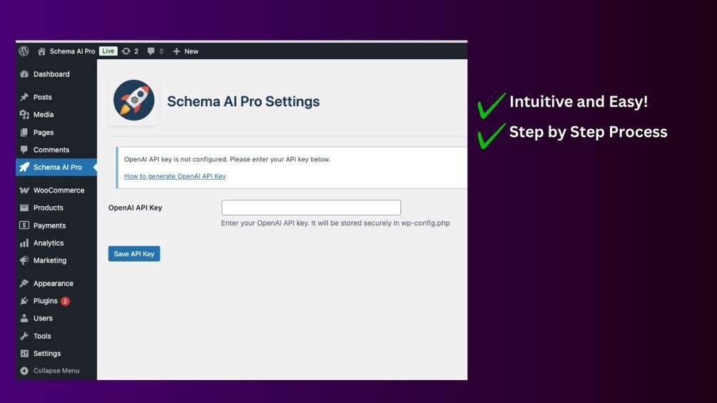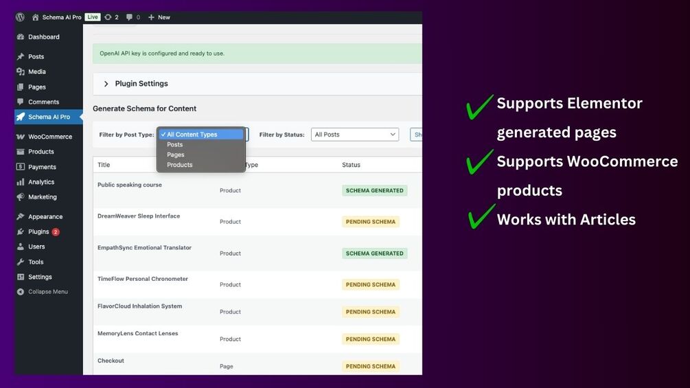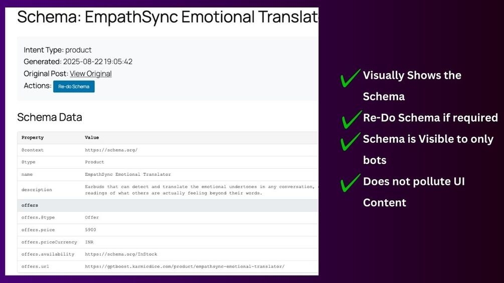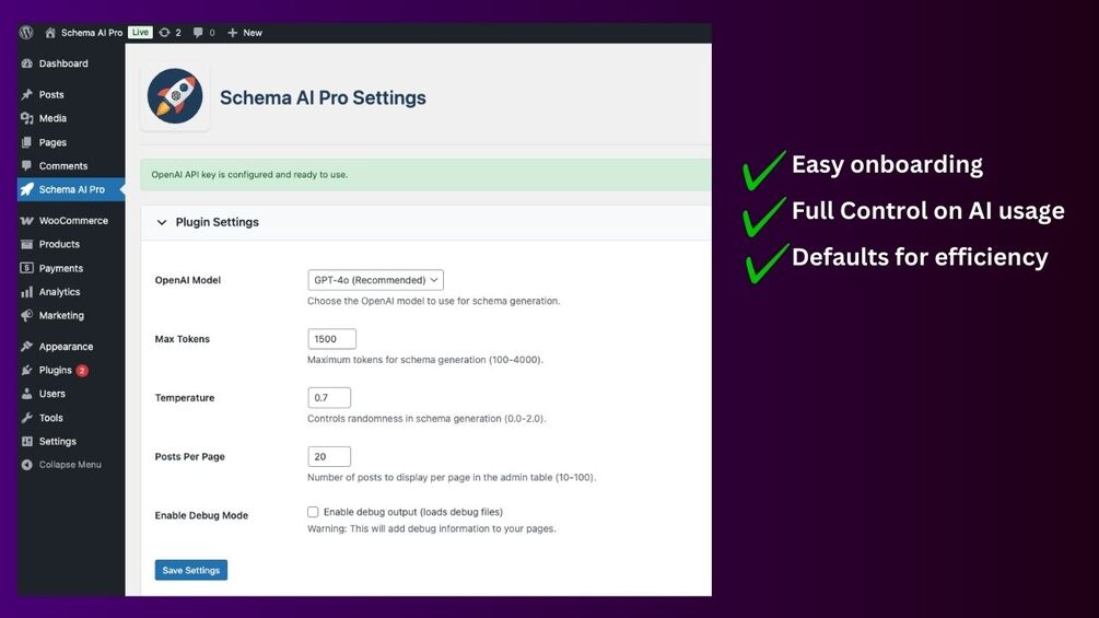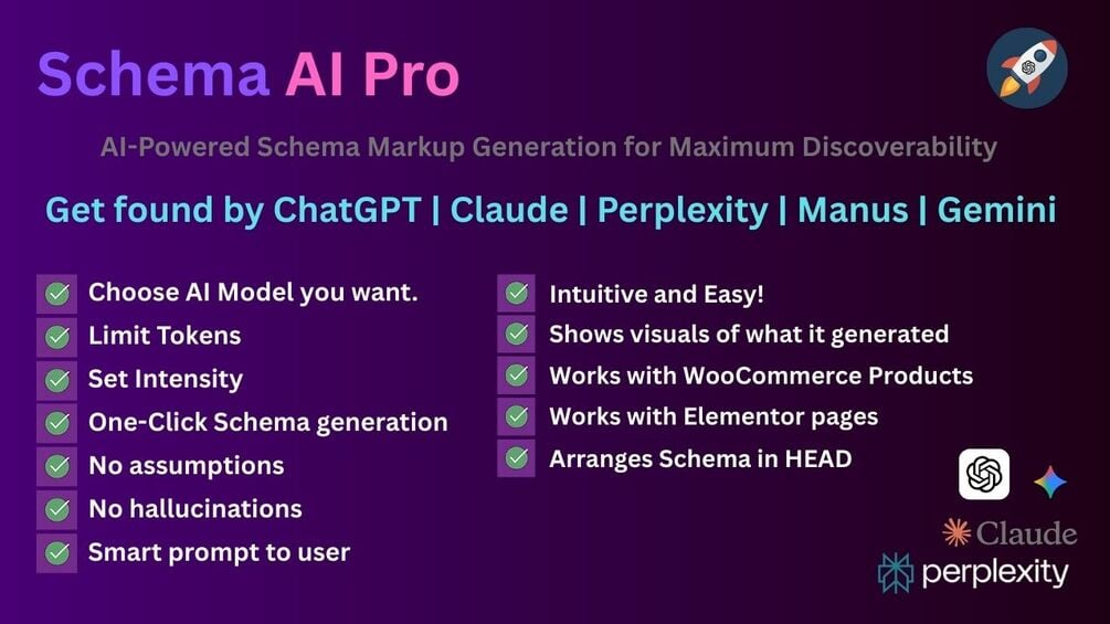 - AI-Generated Schema: Uses OpenAI API to create contextually perfect schema markup