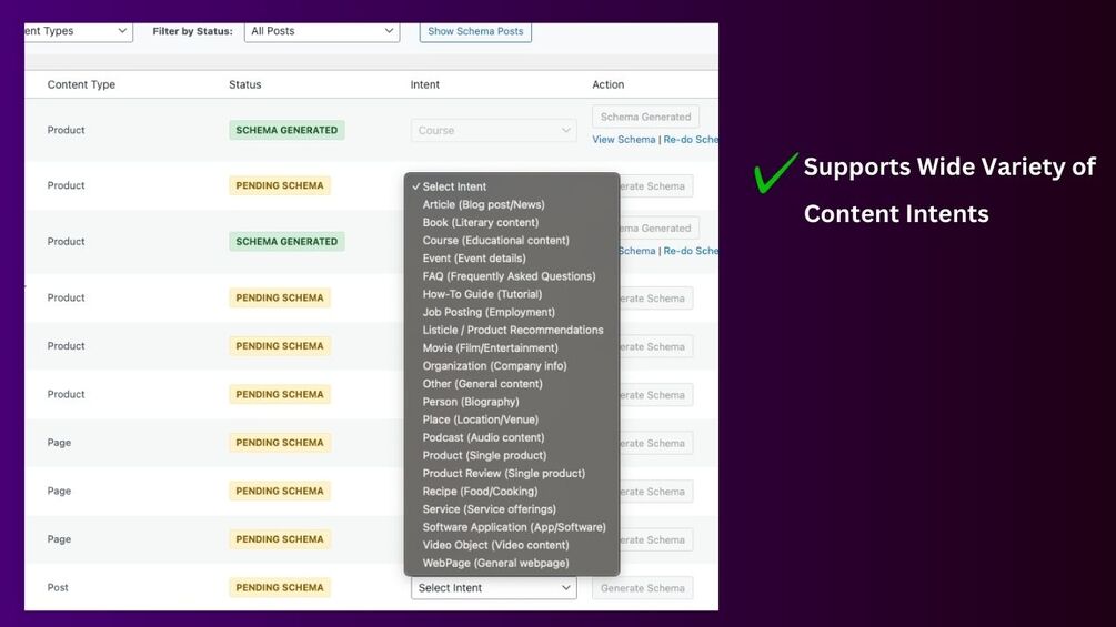 - One-Click Generation: Generate schema for any post/page with a single click